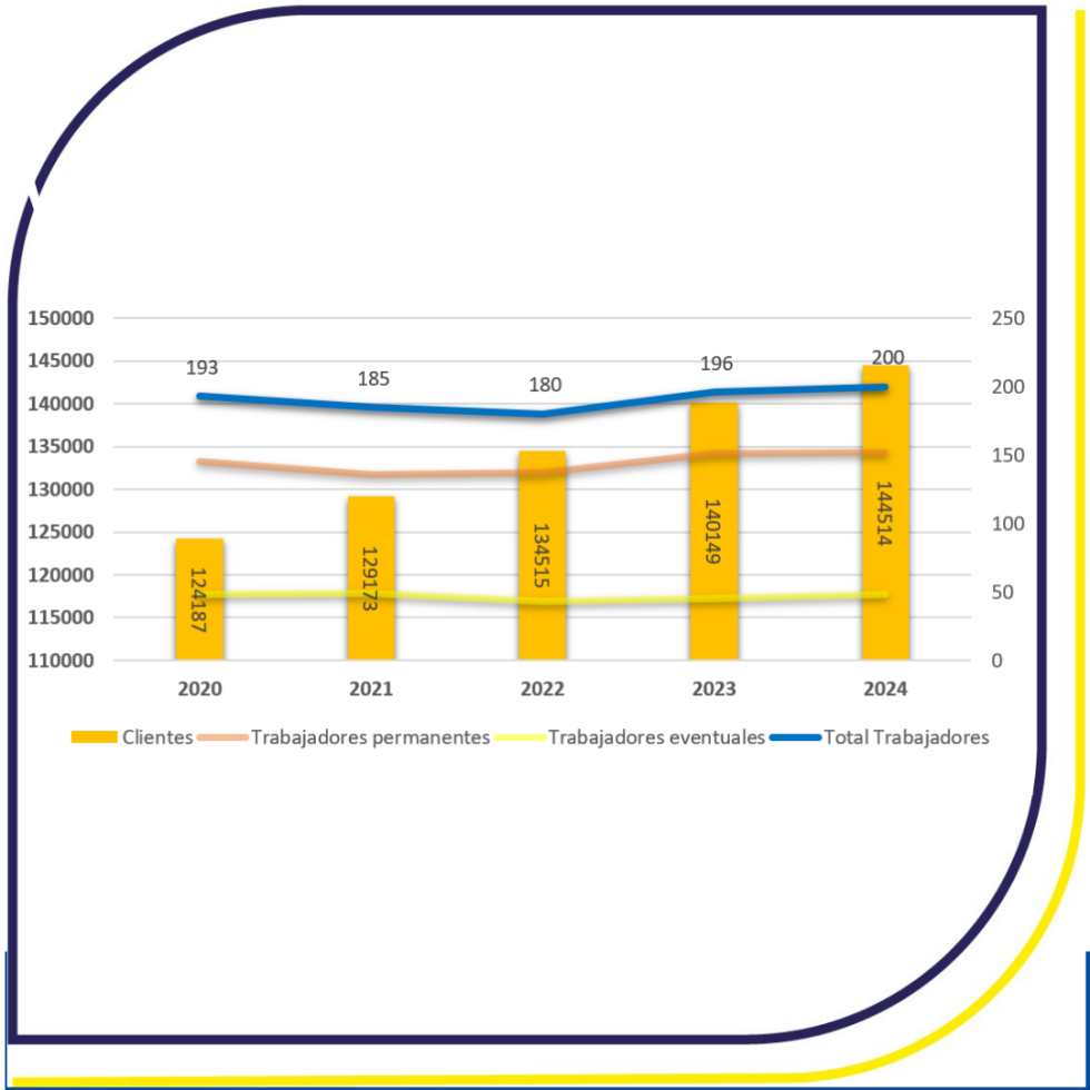 En nuestra Compañía, el capital humano es el recurso más valioso y constituye la base sobre la cual construimos nuestro éxito. Durante el año 2024, hemos enfocado nuestros esfuerzos en desarrollar y potenciar las habilidades de nuestro personal, asegurando que cada miembro del equipo esté alineado con la misión y visión de la empresa. . En la gestión 2024 se cuenta con un total de 200 trabajadores de planta.